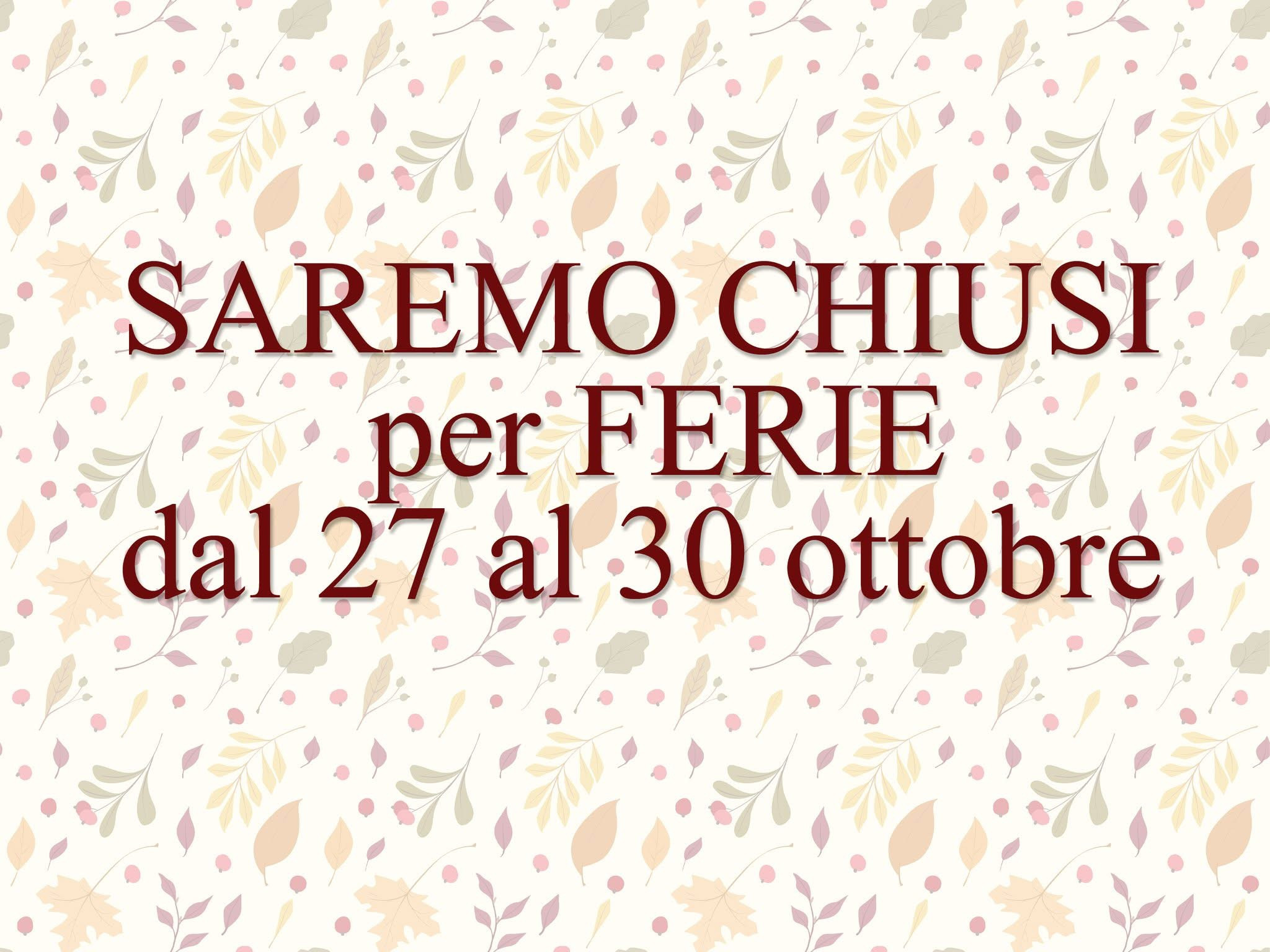 Chiusi per ferie dal 27 al 30 ottobre